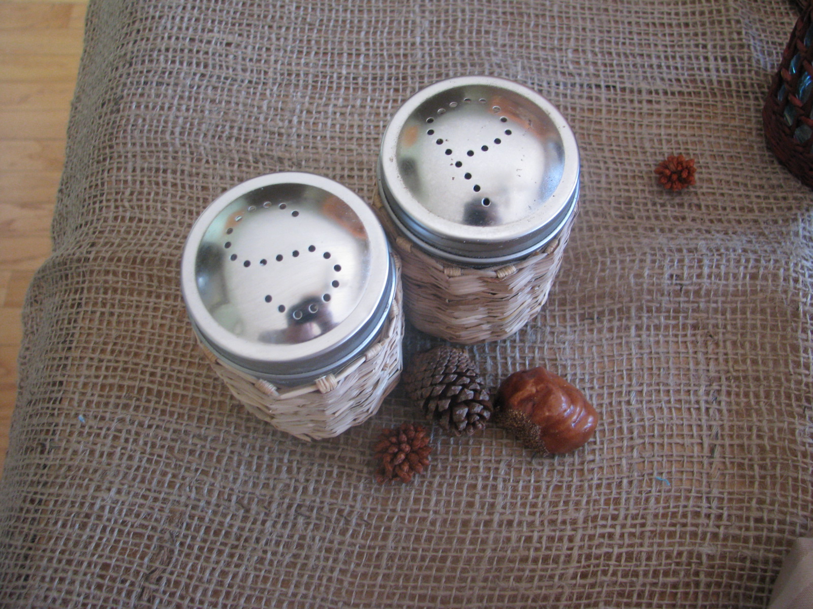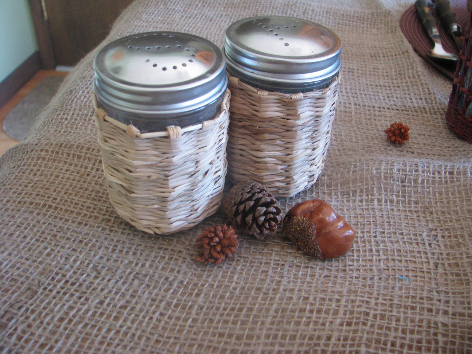 I also pulled out my rattan covered S and P. These somehow get used all year long.