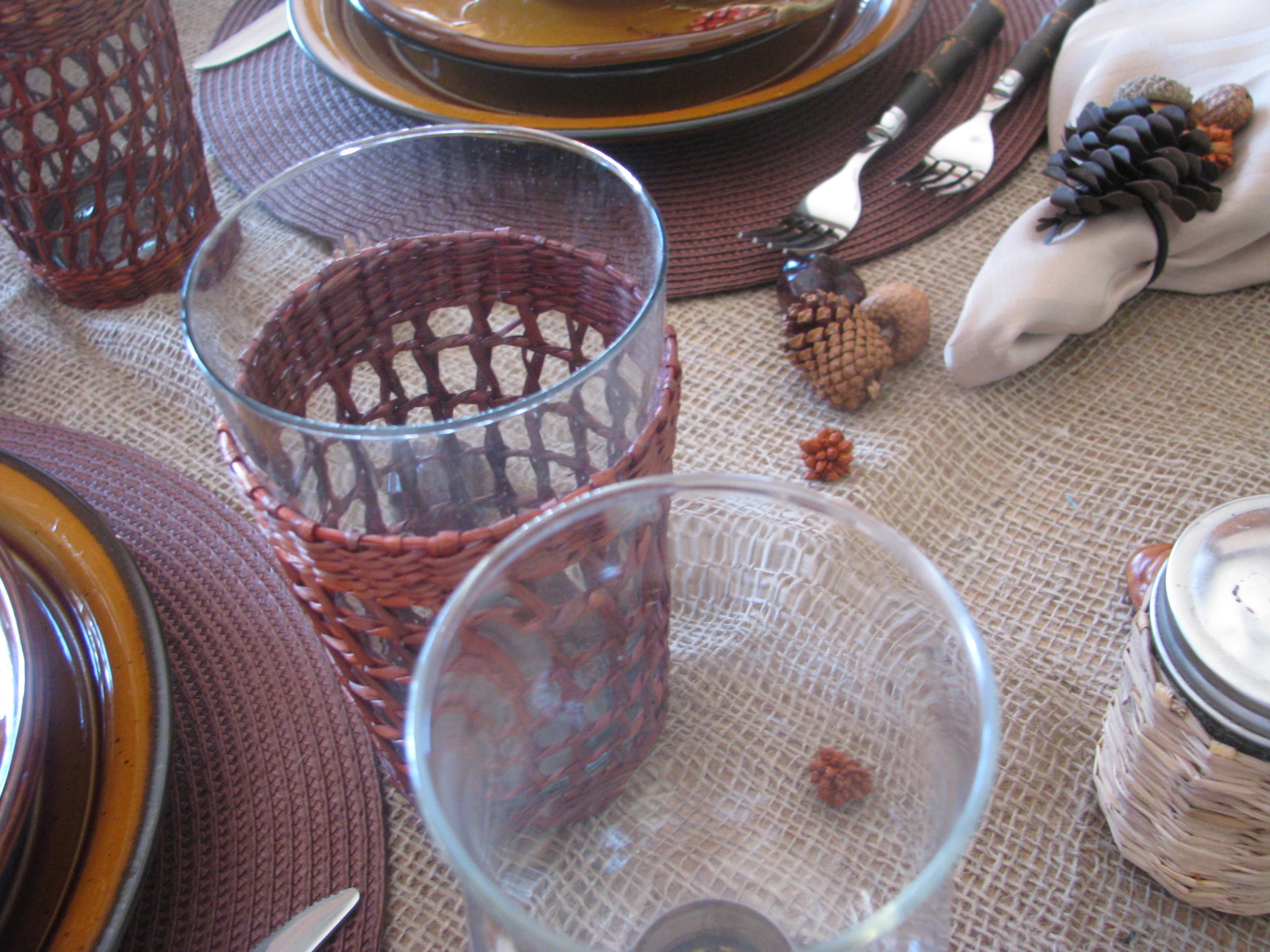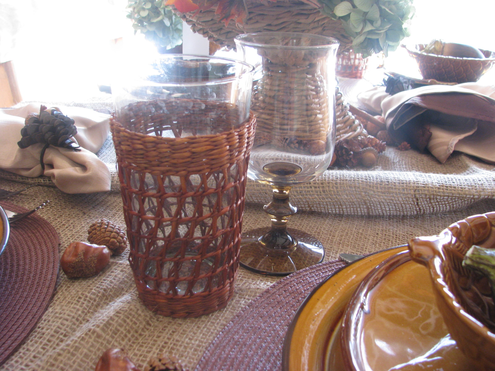 I used my rattan covered water glasses and my stemmed glasses.