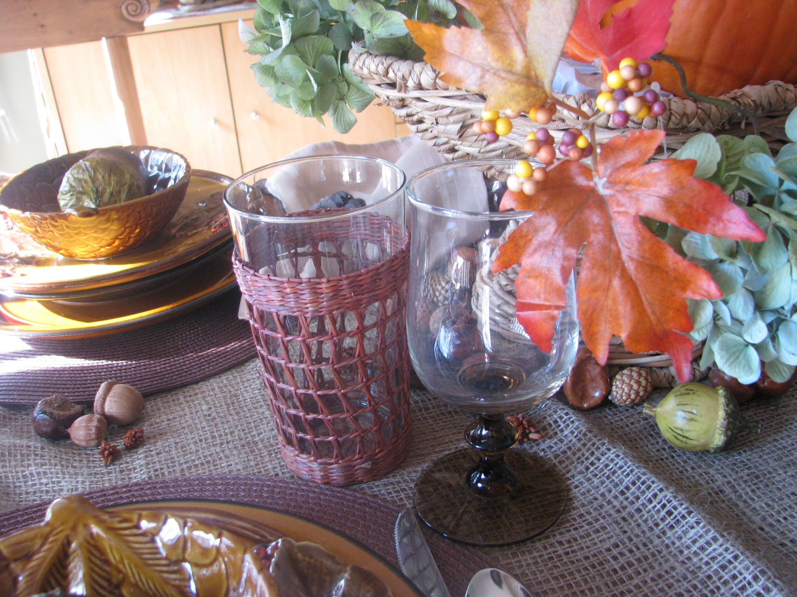 Beautiful job Pinky! I love those acorn bowls! Love the colors and textures...all very warm and inviting! Can't wait to see your Thanksgiving table!