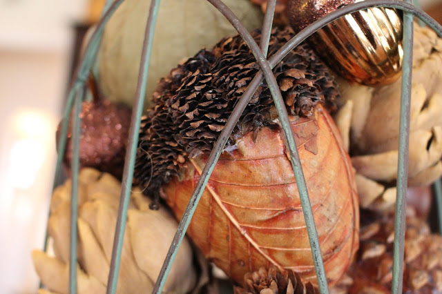 Good morning and happy Labor Day! Labor day signals the end of summer but Fall doesn't actually start til Sept. 23rd. Now, who can wait til then to bring some Fall into our homes?? I know I can't. So on Sept. 1 I gave myself permission to start putting all the summer décor away and bring in Fall! Even though it was in the 90's all last week it was Fall inside! Fall is my favorite season, especially for decorating both inside and out! So, here are a few little peeks at what I have been up to. Full reveals coming soon!!!! This is one of my favorite faux pumpkins, it moves around to a different spot each year:)